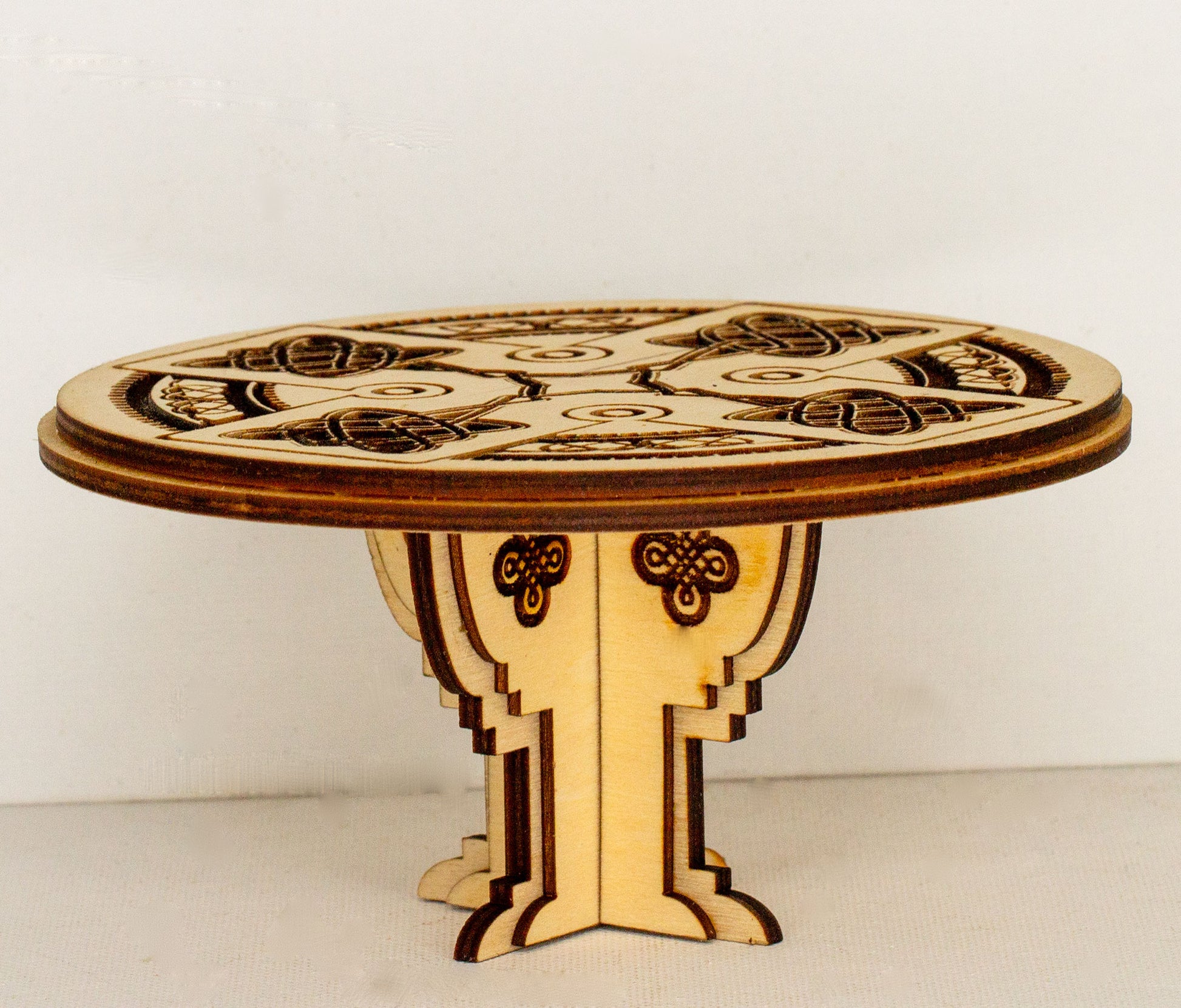 Miniature Gothic Style Round Celtic Engraved Table - 1 12 or 1 24 Scale Kit