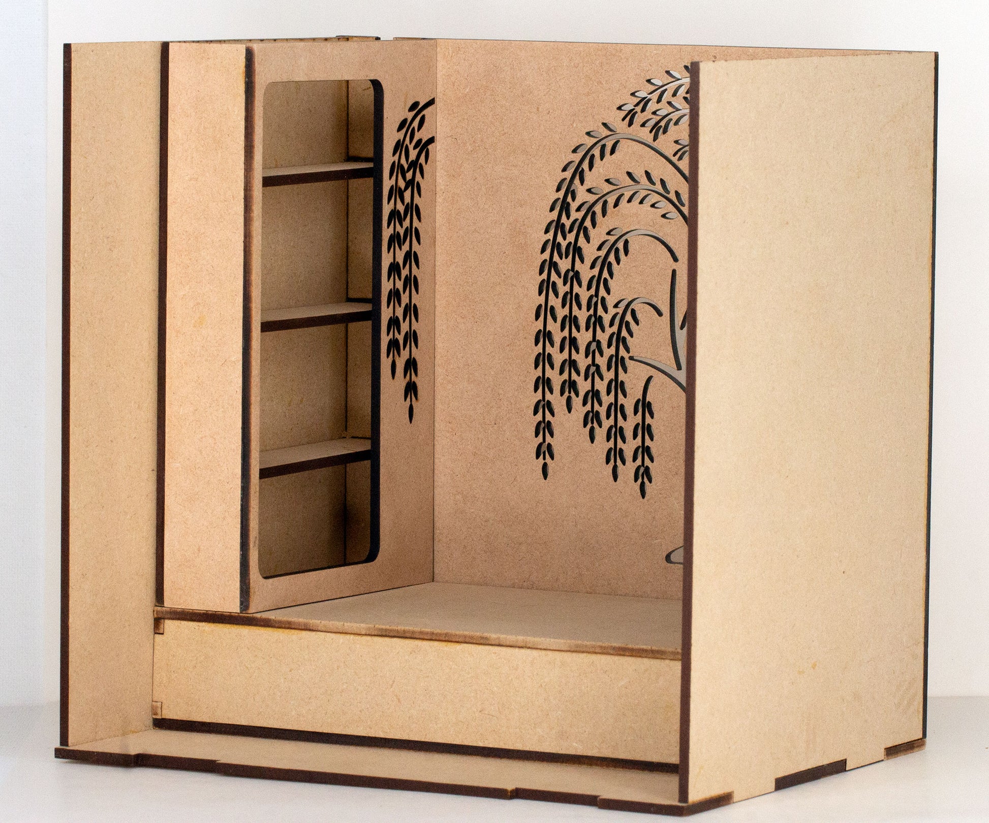 The room is made from your choice of quality MDF wood (best for paint) or Baltic Birch plywood (best for stain).